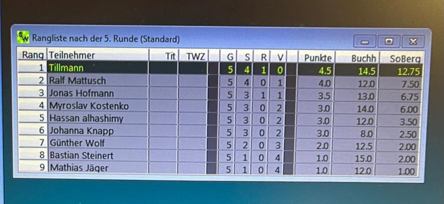 Zweiter wurde Michael Schäfer von den Freibauern Mörlenbach, punktgleich mit unserem Topspieler vom SK Fürth
