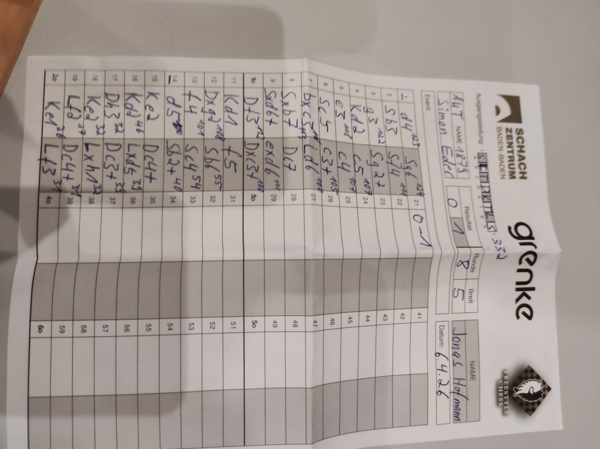 Zweiter wurde Michael Schäfer von den Freibauern Mörlenbach, punktgleich mit unserem Topspieler vom SK Fürth Jonas Hofmann. Dieser musste sich erst in der allerletzten Runde geschlagen geben und lag somit nur einen halben Punkt hinter dem Gewinner.